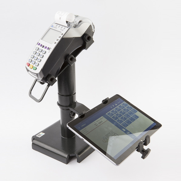 Riešenie pre ekasa v súlade s novou legislatívou. Komplexné pokladničné riešenie s profesionálnou pokladničnou aplikáciou vhodné pre pevné prevádzky, predaj tovaru, služieb aj gastro segment. Uchytenie tabletu a platobného terminálu s fiškálnou tlačiarňou v kompaktnom, masívnom a stabilnom stojane. Možnosť pripojenia externých zariadení/periférií (skener čiarových kódov, peňažná zásuvka, digitálna váha).