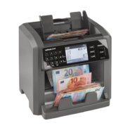 Ratiotec Rapidcount T 575 je spoľahlivá stolná počítačka bankoviek triedených aj netriedených. Je vhodná pre počítanie stredných a väčších objemov bankoviek. Ratiotec Rapidcount T 575 disponuje displejom, ktorý zobrazuje počet vložených bankoviek a ich hodnotu. Počítačka má vysokú rýchlosť - 1000 bankoviek za minútu. Kapacita podávača je 300 bankoviek a kapacita vyhadzovača je 200 bankoviek. Disponuje tiež automatickou funkciou štart / stop pre počítanie bankoviek a funkciou sčítanie bankoviek. Bankovky môžu byť pridané do podávača v priebehu počítania. Počítačka rozpozná UV prvky bankoviek, preto môže kontrolovať, či sa nejedná o falzifikáty. Počíta aj zmiešané bankovky rôznych hodnôt a mien (eurá, české koruny, americké doláre, britské libry, švajčiarske franky atď). Ako pracuje počítačka bankoviek Ratiotec Rapidcount T 575 - video na stiahnutie tu. Funkcie: - Počítanie kusov - Meny EUR | USD | GBP | CHF | BGN | CAD | CZK | HUF | HRK | JOD | MXN | PLN | RON | SCO | XAF - Spoľahlivo počíta aj použité a špinavé bankovky - Kontrola UV ochranných znakov - Zistenie hodnoty - Funkcia tlače súpisky - Počítať súčet - Vytváranie balíčka - zväzkovanie bankoviek - Automatický štart - Voľba módu počítanie - Zobrazenie súpisky - Výber meny - Nulovanie počtu bankoviek - Vynulovanie výsledkov počítania - jednoduchá a intuitívna obsluha [kad_youtube url="https://www.youtube.com/watch?v=S4iUIm5bgs4" ]